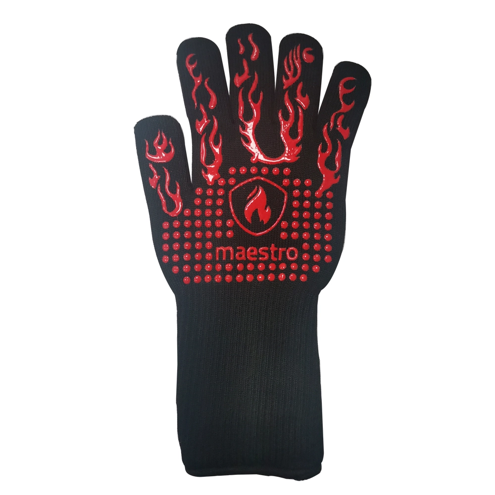 Met de Maestro BBQ handschoen werk je veilig en comfortabel rond hete grills, roosters en accessoires. Deze hittebestendige handschoen van het merk Maestro combineert stevige materialen met een opvallend zwart-rood design en een gripvaste siliconenstructuur. Ideaal voor iedereen die graag barbecueert en daarbij maximale controle en bescherming wil.